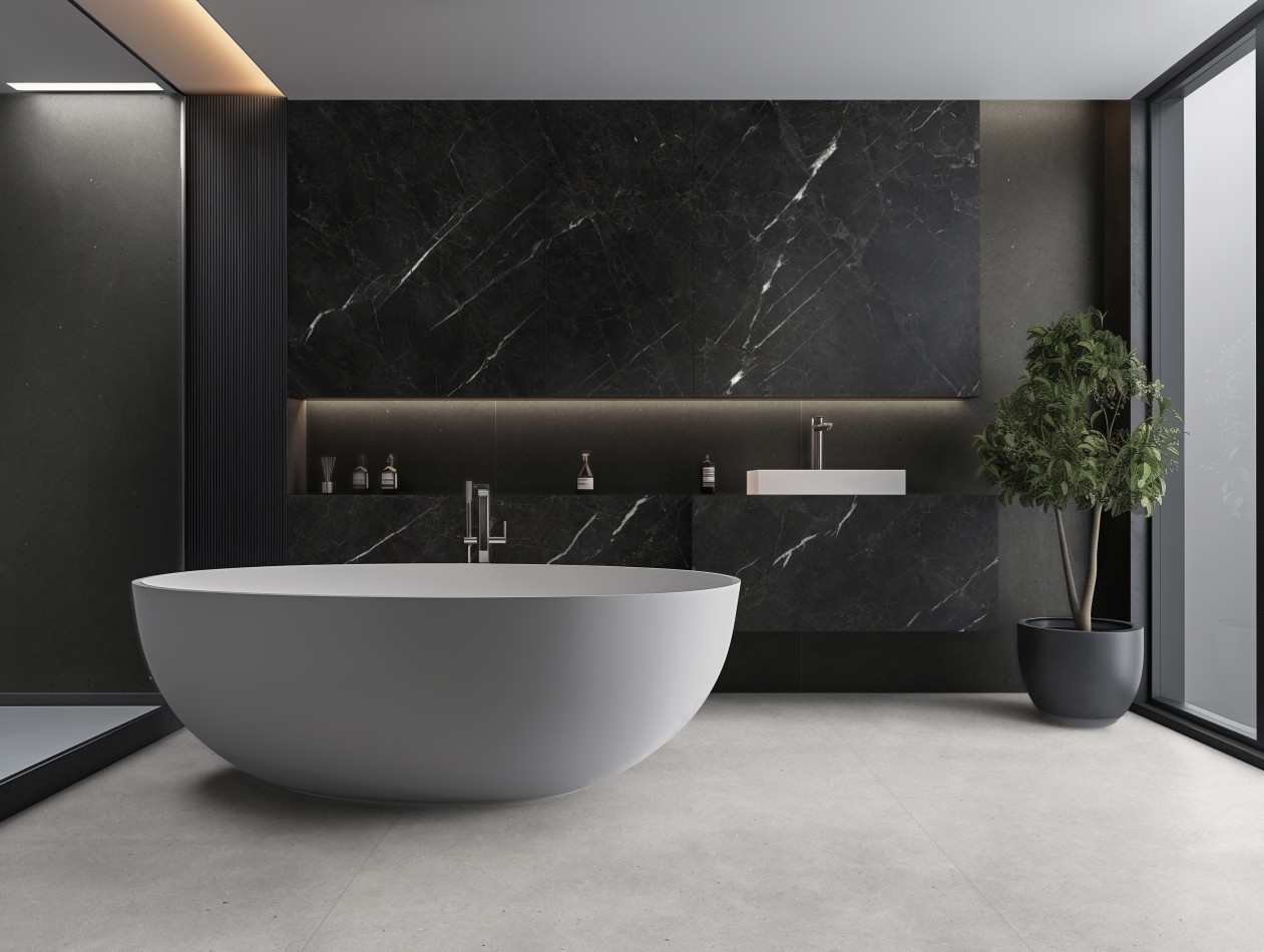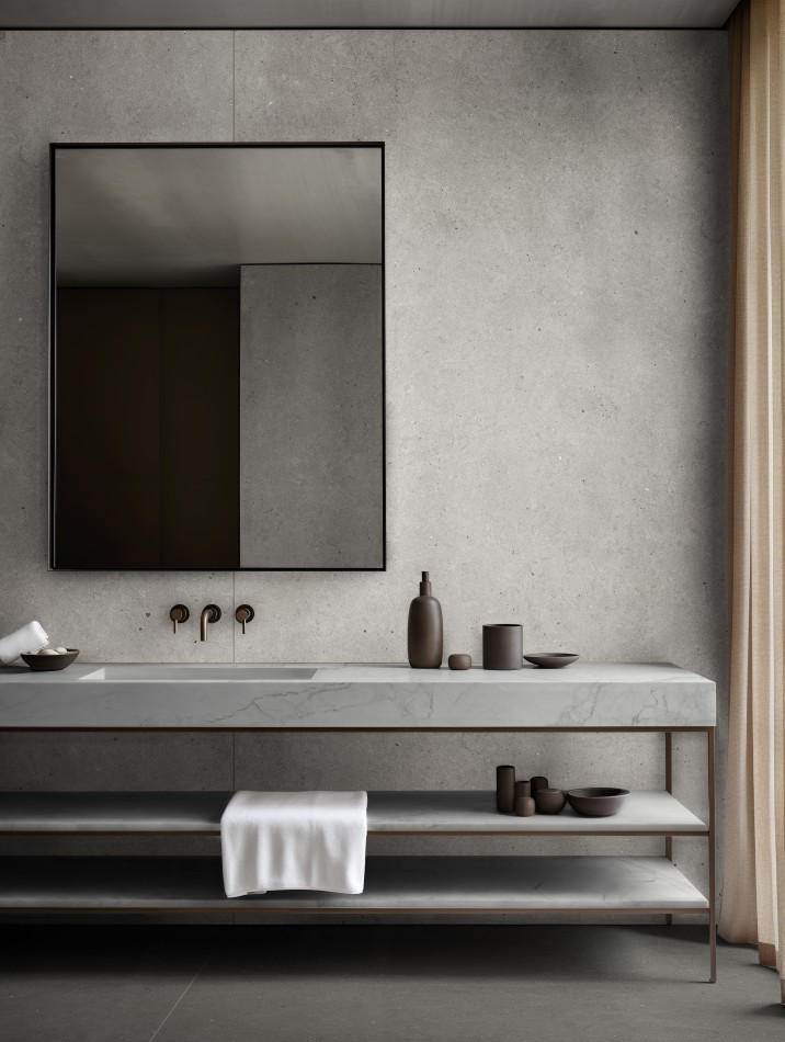 卫浴空间- 莱姆石-浅灰深灰+经典理石系列-雪花白